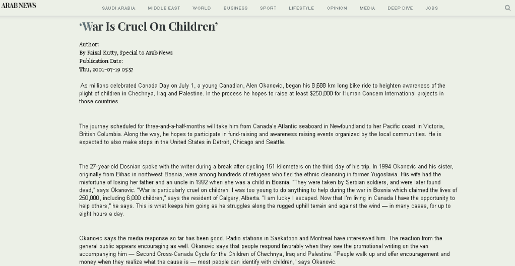 As a volunteer Media Relations Coordinator, I worked with local communities across Canada, to promote the charity’s 2nd Cross-Canada Cycle Tour; raising over $150,000 for war orphans.